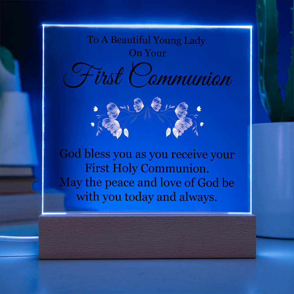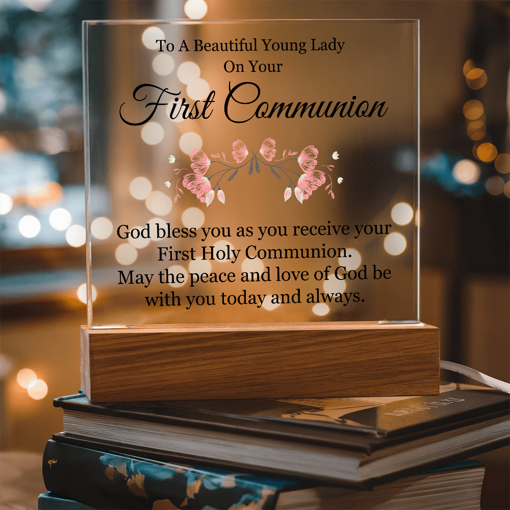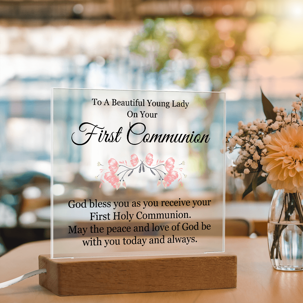 Your plaque will be crafted from premium acrylic with a professionally printed design for a polished look. It comes with a stylish wooden LED base, and you can choose between a USB plug-in option OR a cordless battery-operated option (requires 2 AAA batteries, not included). Both LED bases feature 7 vibrant colors, allowing the user to customize the lighting with various color changes and dynamic cycles.