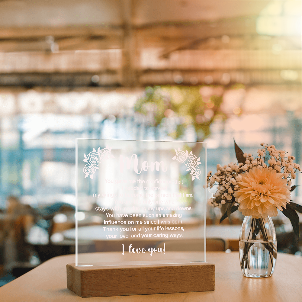 A mother’s love is the foundation of who we become. This acrylic plaque beautifully expresses gratitude for the lessons, love, and encouragement only a mom can give: