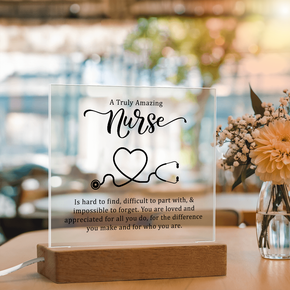 Your plaque will be crafted from premium acrylic with a professionally printed design for a polished look. It comes with a stylish wooden LED base, and you can choose between a USB plug-in option OR a cordless battery-operated option (requires 2 AAA batteries, not included). Both LED bases feature 7 vibrant colors, allowing the user to customize the lighting with various color changes and dynamic cycles.