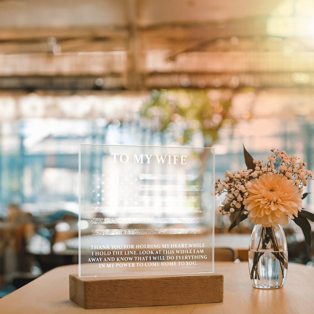 For the brave men who serve, and the strong women who wait β love is what keeps them connected across any distance. This acrylic plaque honors that bond with a message straight from the heart: